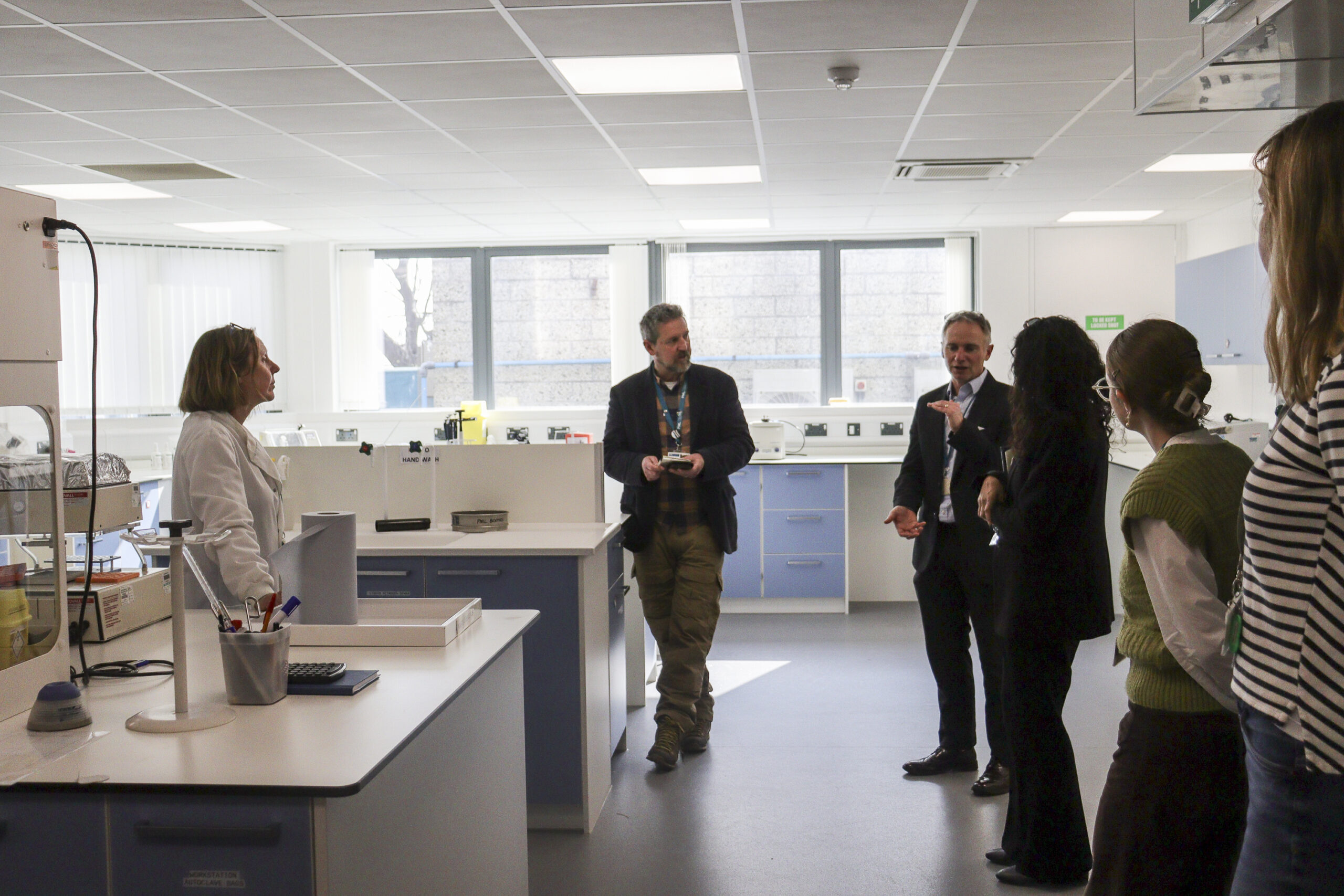 Anjali was then given a tour of the laboratory by Professor Smyth, alongside Professor Matt Frost – Head of the International Office, Policy Officer Elin Meek, and Betheney Wills, the Defra PML Secondee.