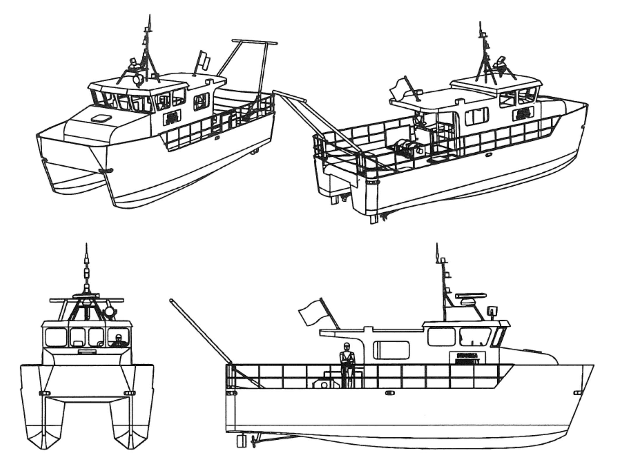 Image caption: Schematics of the RV Noctiluca, a bespoke design commissioned by Swansea University for research survey and teaching operations in the Bristol Channel. Named after the dinoflagellate, ‘Noctiluca scintillans’ which, in its common form and off the UK coast, is a predator of microalgal blooms. The name Noctiluca scintillans comes from the Latin Noctiluca, meaning “light at night” and scintillans, meaning “shining, throwing out flashes of light”. Blooms of Noctiluca, an organism also commonly referred to as ‘sea-sparkle’, give a blue-light glow to crashing waves at night, or when you paddle through their growths in shallow waters.
